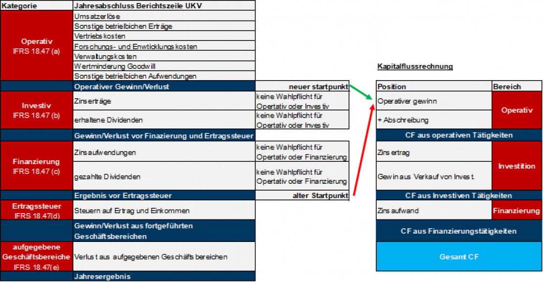 Der IFRS 18 führt zwei wesentliche Änderungen in der Kapitalflussrechnung ein:
